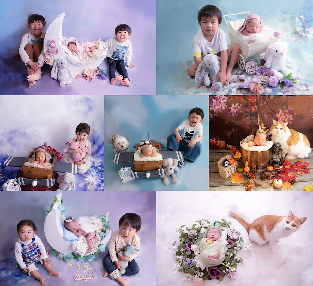 シンプルすぎず、少しだけバリエーションも欲しい方におすすめのプランです。赤ちゃんのご様子を見ながら、無理のない範囲で撮影を行います。